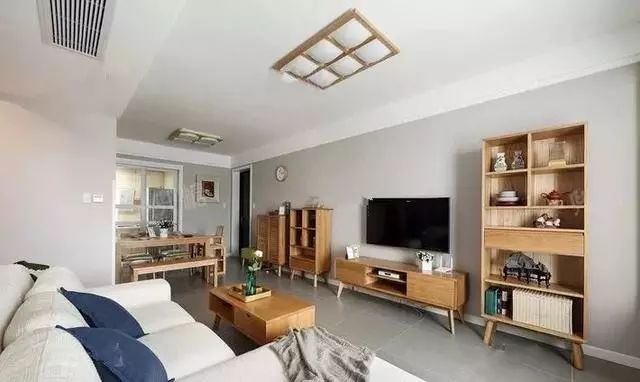 墙面是淡灰色的色调,整体室内的基调都是这种浅色系的,搭配上原木色的家具显得清新自然的许多。