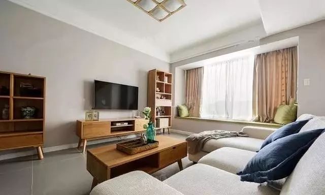 没有去设计什么电视墙,就是这样简单的刷了一个墙面再摆放电视柜就可以了。