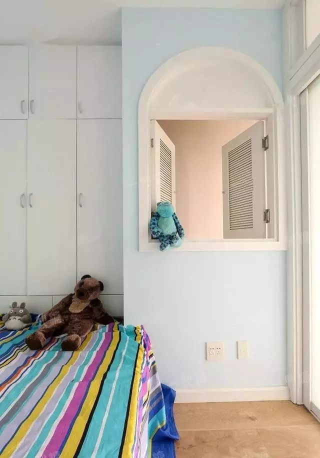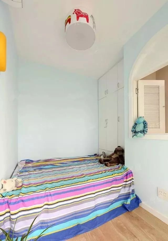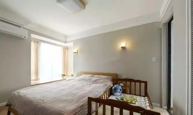 主卧室,留了一个小床是为了方便照顾还小的女儿。
