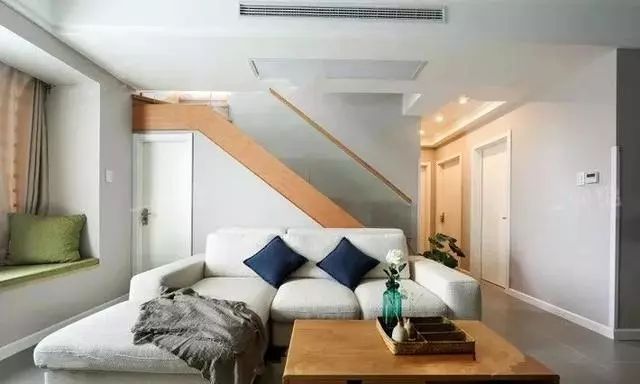 沙发的背后是上楼的楼梯。