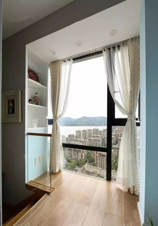 很喜欢这样飘窗的设计,从窗外可以看到一点点江面哦,算是江景房了吗?哈哈。