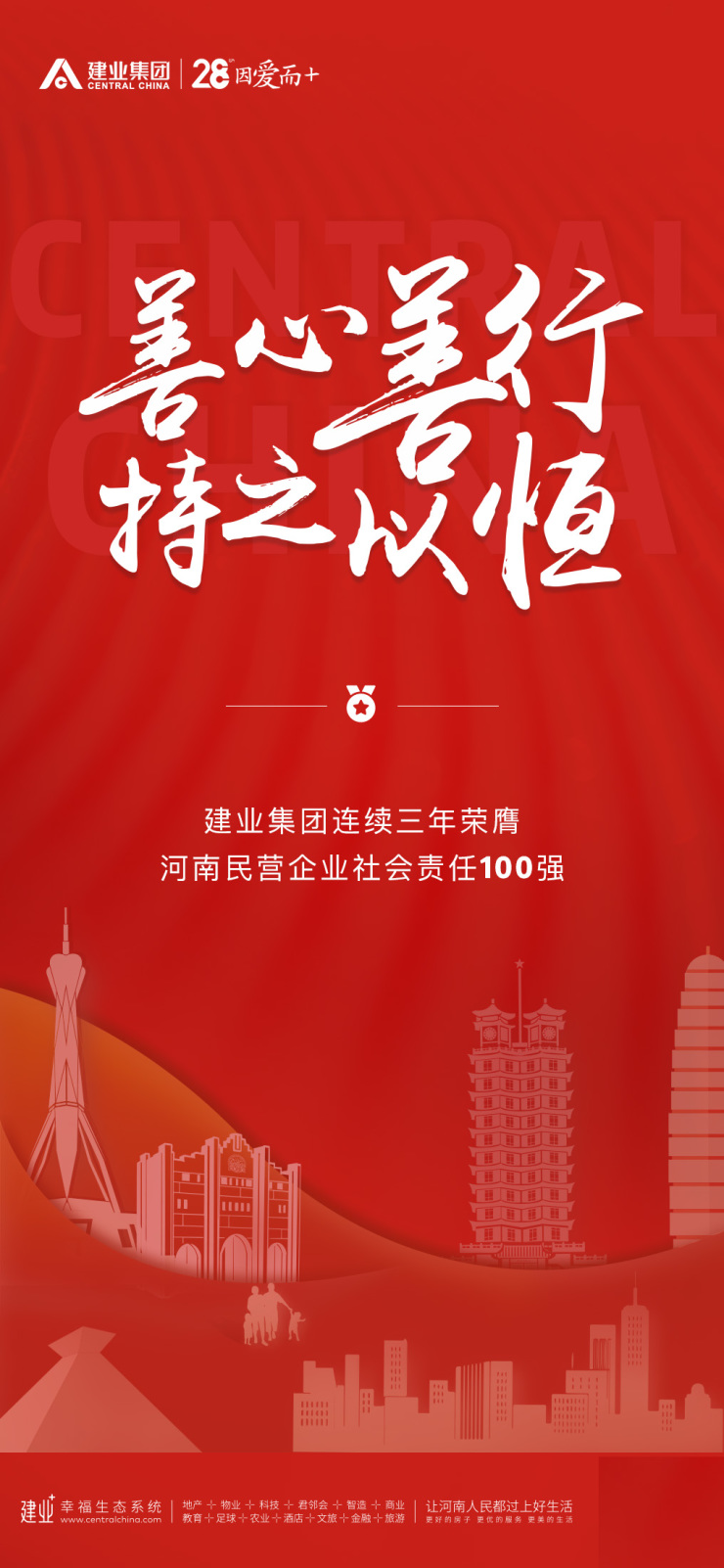 此次荣膺河南民营企业百强三项大奖,提升了建业持续领跑的信心。今后,建业集团将继续高举社会责任大旗,传递企业发展正能量,不断丰富社会责任内涵,努力为中原更加出彩贡献力量!