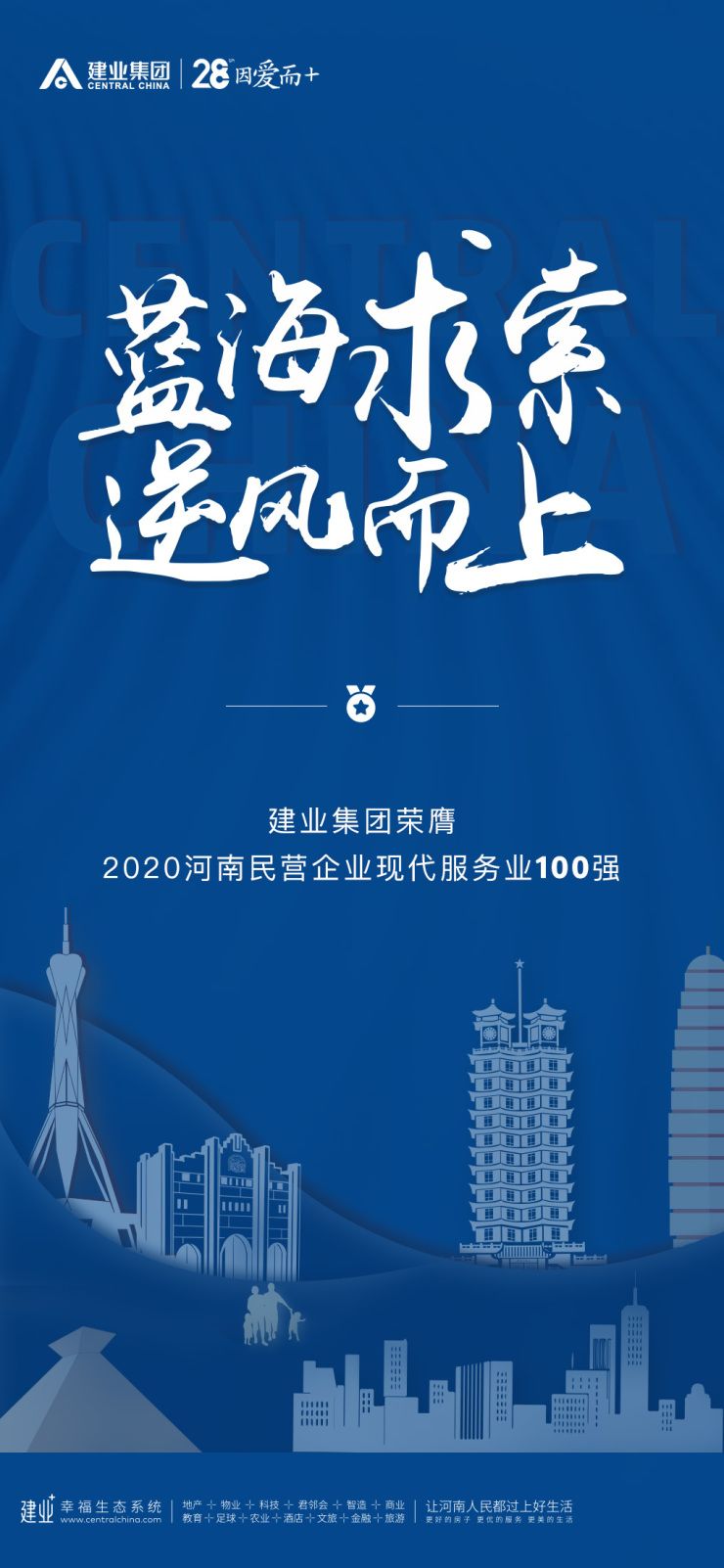 10月26日下午,由河南省工商联主办的2020河南民营企业百强发布会在郑州举行。建业集团荣膺“河南民营企业100强”“河南民营企业社会责任100强”“河南民营企业现代服务业100强”三项大奖,表明社会各界对建业高质量发展与履行社会责任的高度认同和肯定。