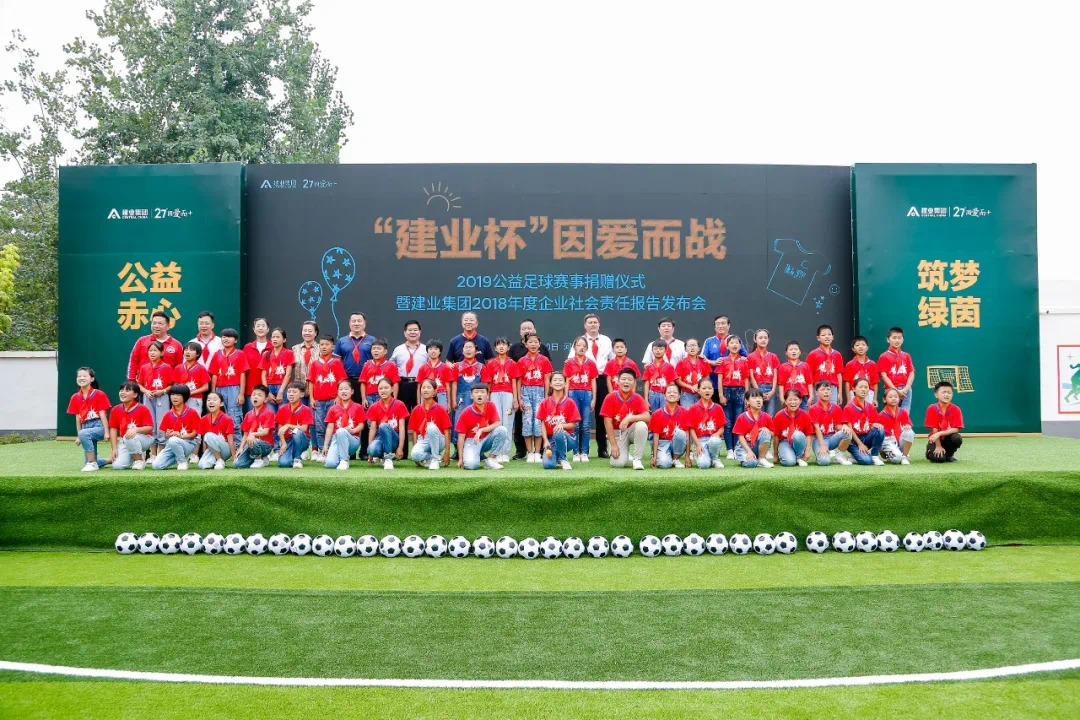 “建业杯”因爱而战公益足球赛事自2018年正式启动以来,致力于帮助更多贫困地区孩子能接受良好教育,已为全省66所农村中小学捐赠爱心球场、足球师资或足球装备,使85000名乡村孩子受益。