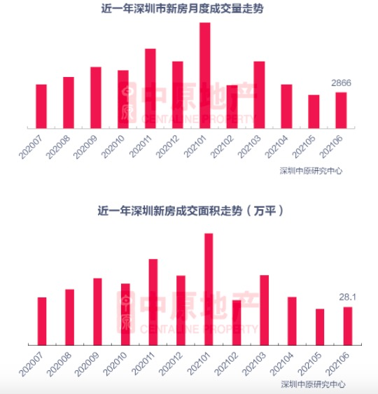 新房市场依然比较火。6月深圳新房住宅成交2866套,环比上升7.1%;成交面积28.1万平米,环比上升5.8%。1-6月,新房住宅成交26140套,同比增长57.8%。
